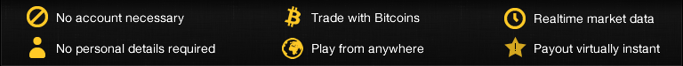 Satoshi Option is Binary Option trading platform powered by Bitcoin. Whether you see Binary Options as an exciting new type of investment, or rather a skilled form of gambling on the stock market - instead of in a casino - Satoshi Option is the world's first Binary Option trading platform that accepts the Bitcoin currency. Simply decide the direction the price of the underlying asset will move (Up or Down). When a Binary Option is purchased on Satoshi Option, a contract is created between the buyer (you) and the ghost of the late Satoshi Nakamoto. This gives the buyer (you) the right to exercise the option at the end of the alloted time period (e.g. 60 earthly seconds). Put simply, if you pick correcly, you make a return. If you pick incorrectly, you lose.